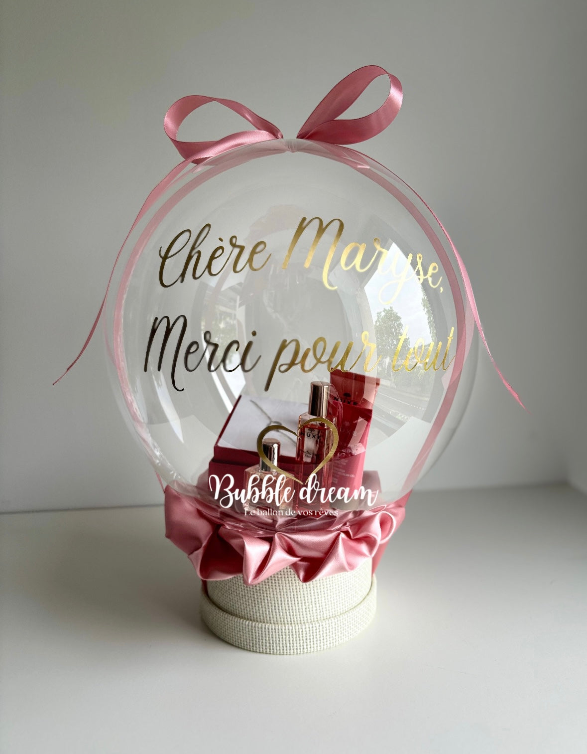 Cette bubble ne comprend pas le coffret car celui ci devra ĂȘtre fourni par vos soins. Le tarif comprend la confection du ballon avec le coffret que vous nous fournirez.Â