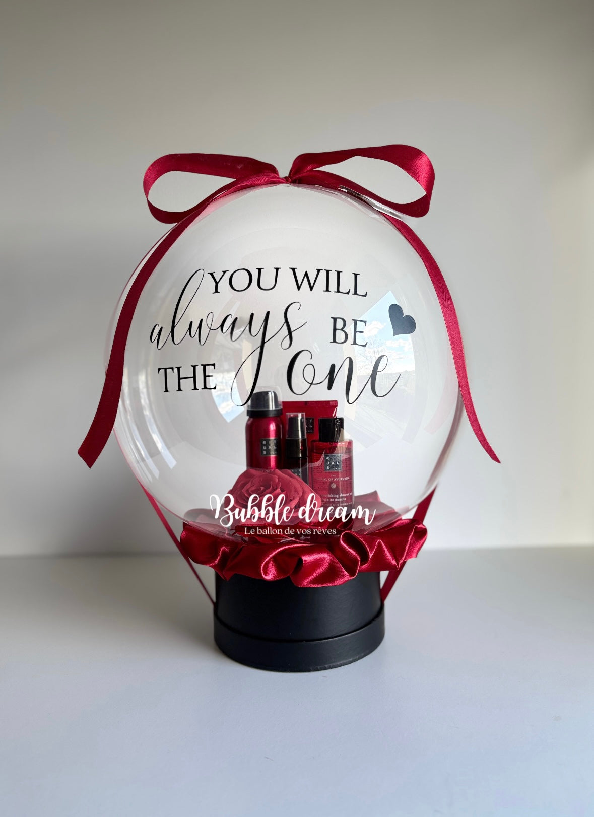Cette bulle est incluse avec le coffret de votre choix que nous vous fournissons. Le tarif comprend la confection du ballon avec le coffret.