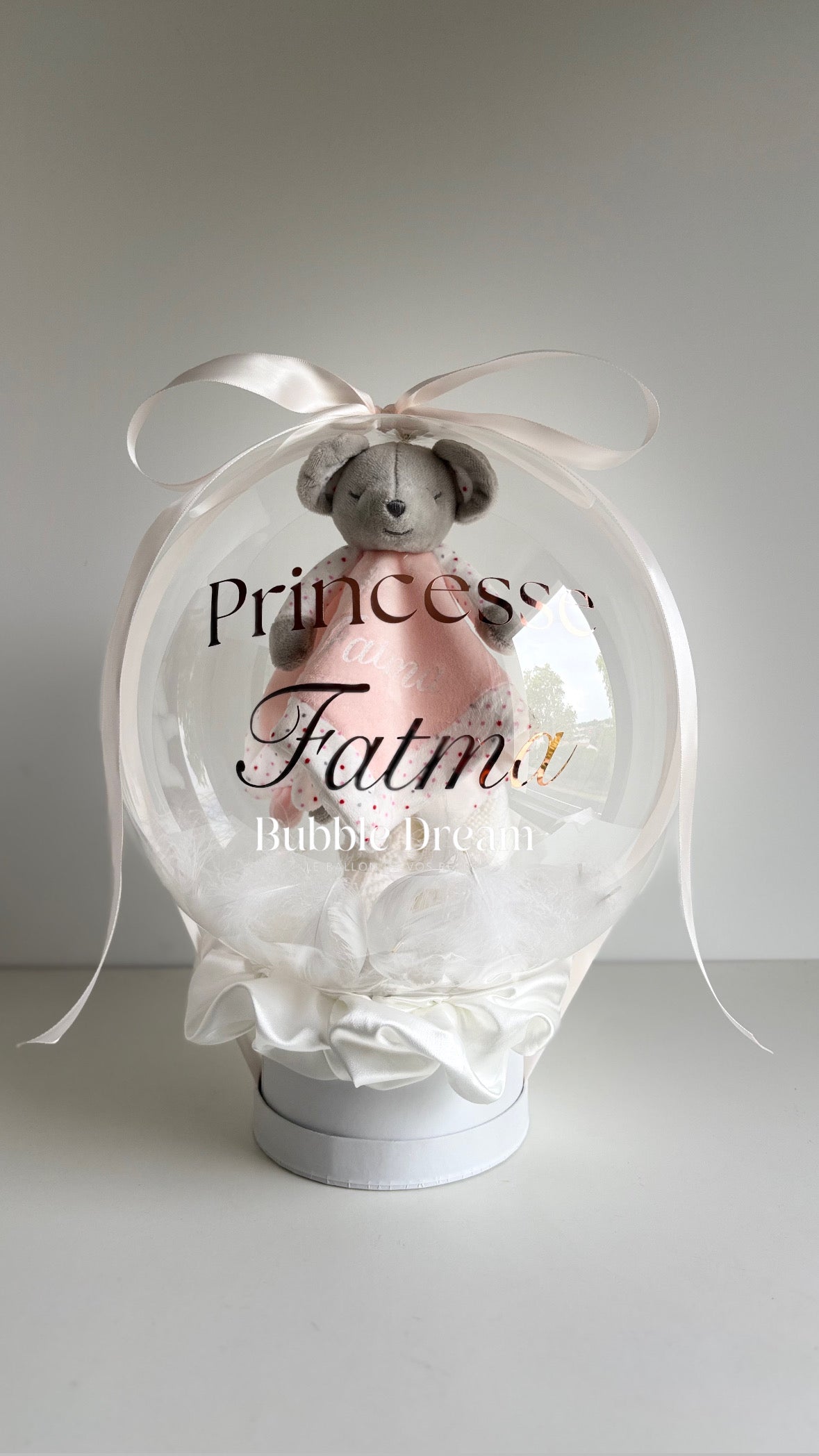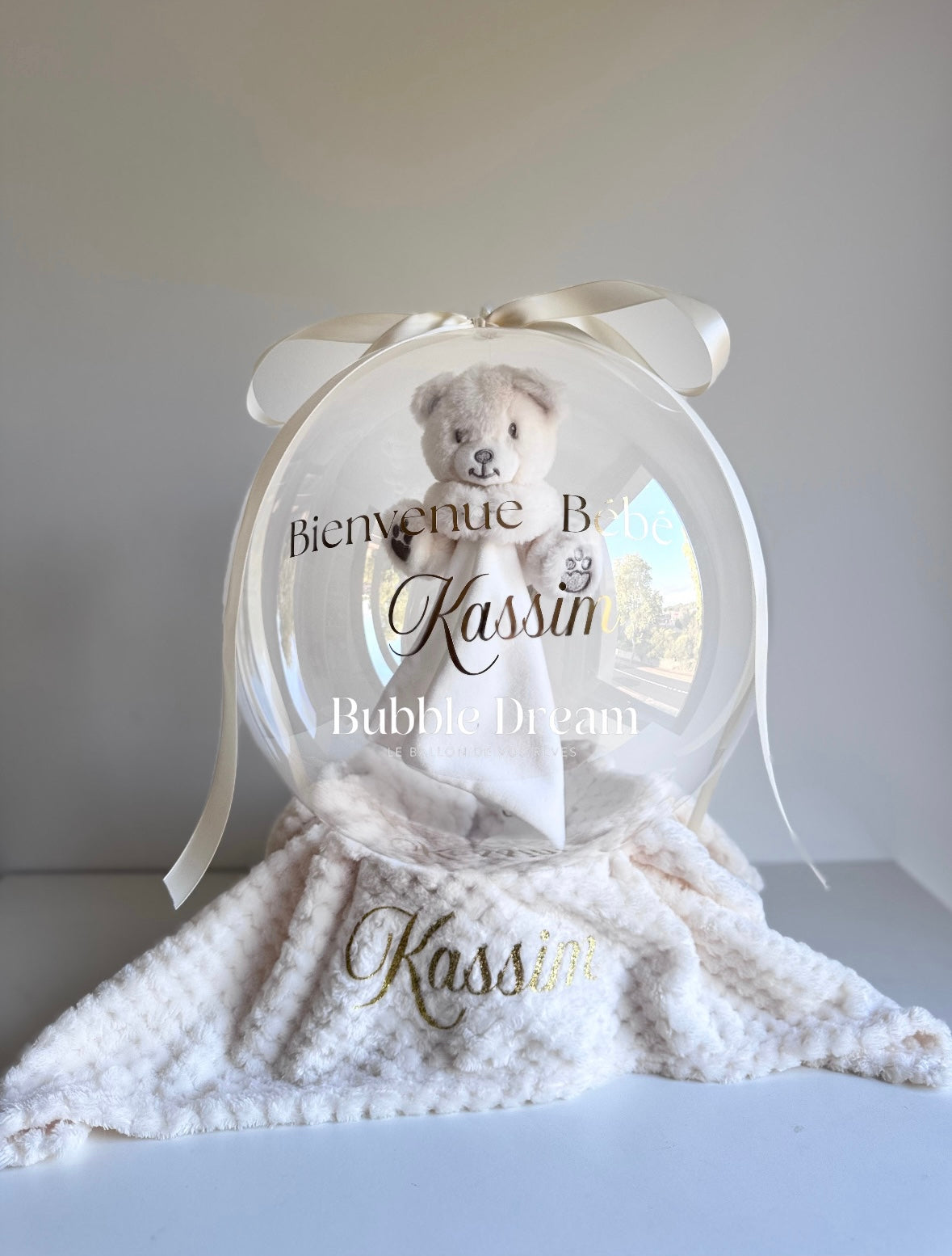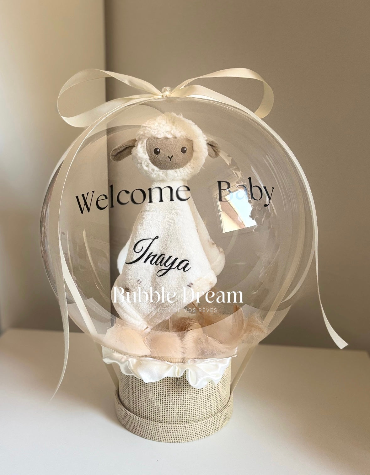 Une bulle tendre et réconfortante, composée d'un doudou tout doux, idéal pour devenir le compagnon officiel de bébé. Cette bulle unique crée un lien précieux et durable, un cadeau rempli d'amour et de tendresse.