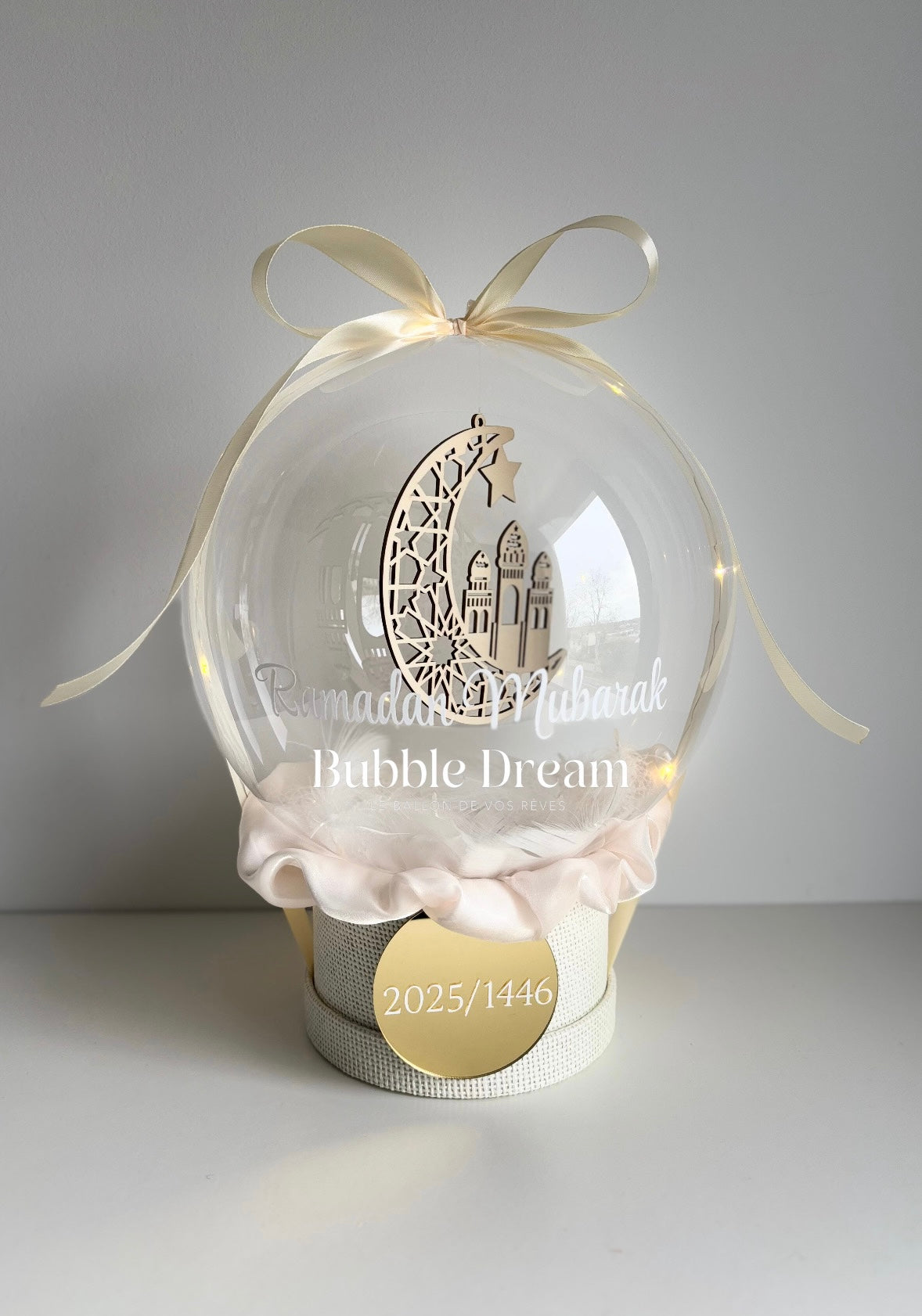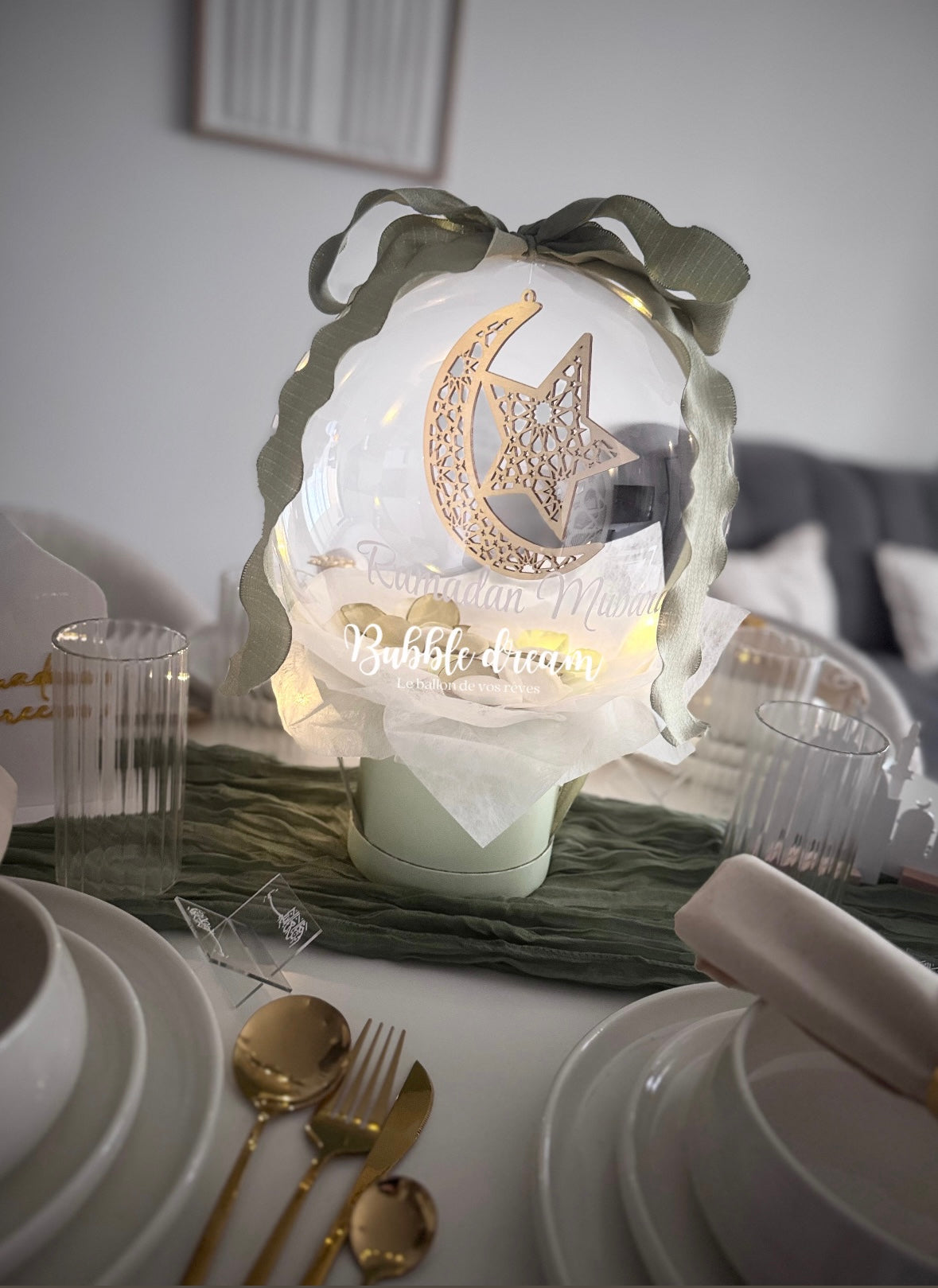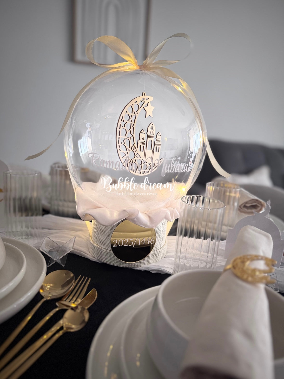 La Bubble Moon est une création poétique imaginée pour sublimer vos plus belles tables pendant ce mois de Ramadan, votre décoration de l'Aïd, pièce prière ou simplement pour offrir un cadeau rempli de douceur.